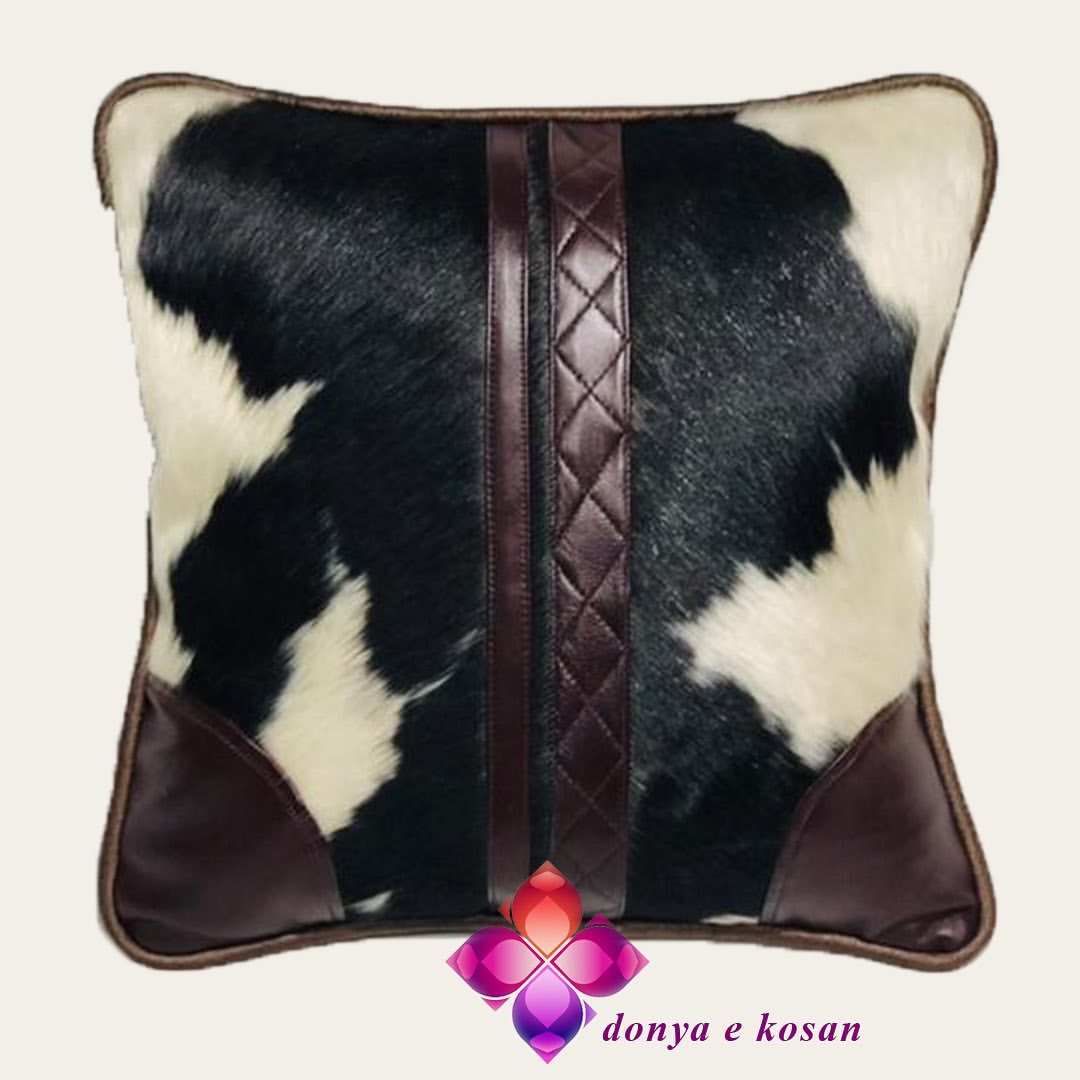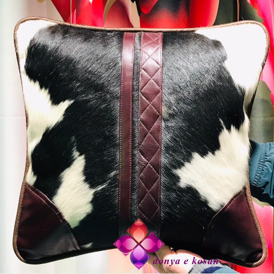 کوسن پوست و چرم طبیعی ،تیکه دوزی شده فوق العاده زیبا مخصوص خاص پسندان ابعاد ۴۰۴۰ امکان تغییر سایز و رنگ جنس پوست و چرم طبیعی
