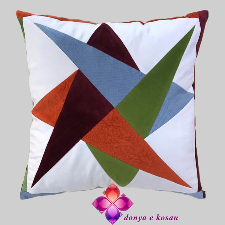 کوسن با پارچه مخمل، تیکه دوزی شده و قابل شستشو در لباسشویی، ارائه شده در رنگ بندی متنوع.