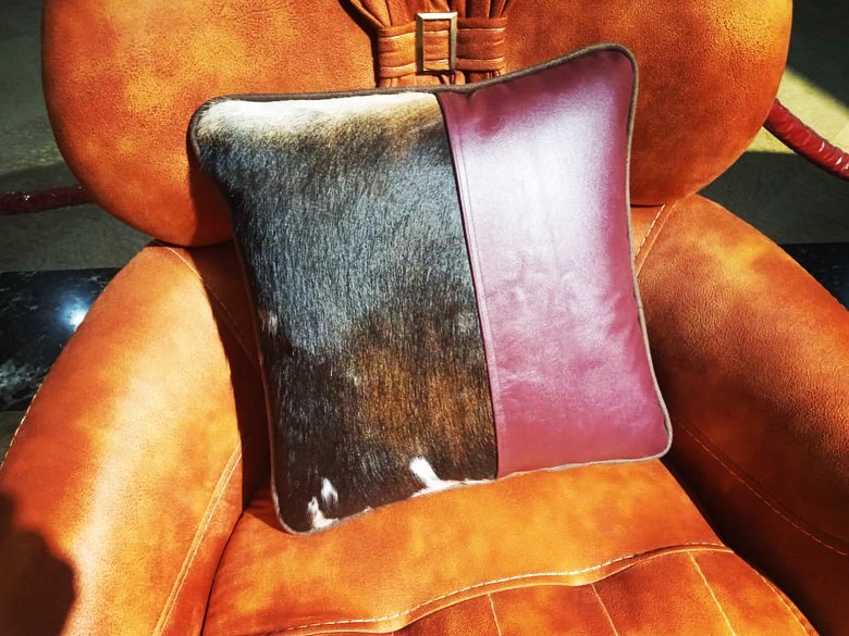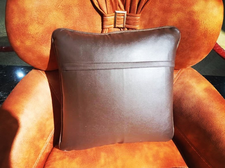 کوسن چرم طبیعی مدل تیکه دوزی ۴۰ در ۴۰