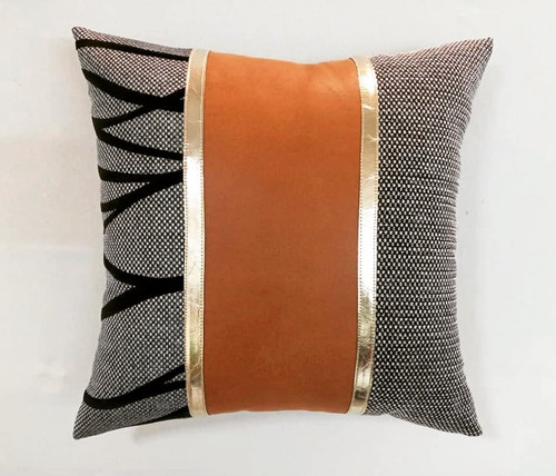 کوسن مخمل و چرم تیکه دوزی شده - کد کالا 244