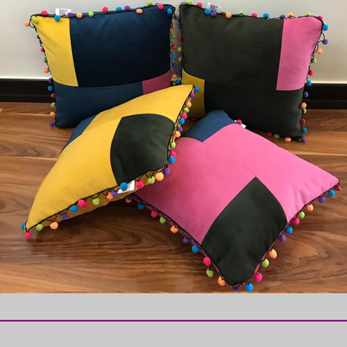کوسن مخمل منگوله دار تیکه دوزی شده - کدکالا 151